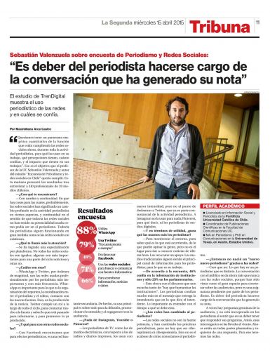 Sebastián Valenzuela sobre encuesta de Periodismo y Redes Sociales.